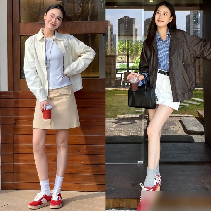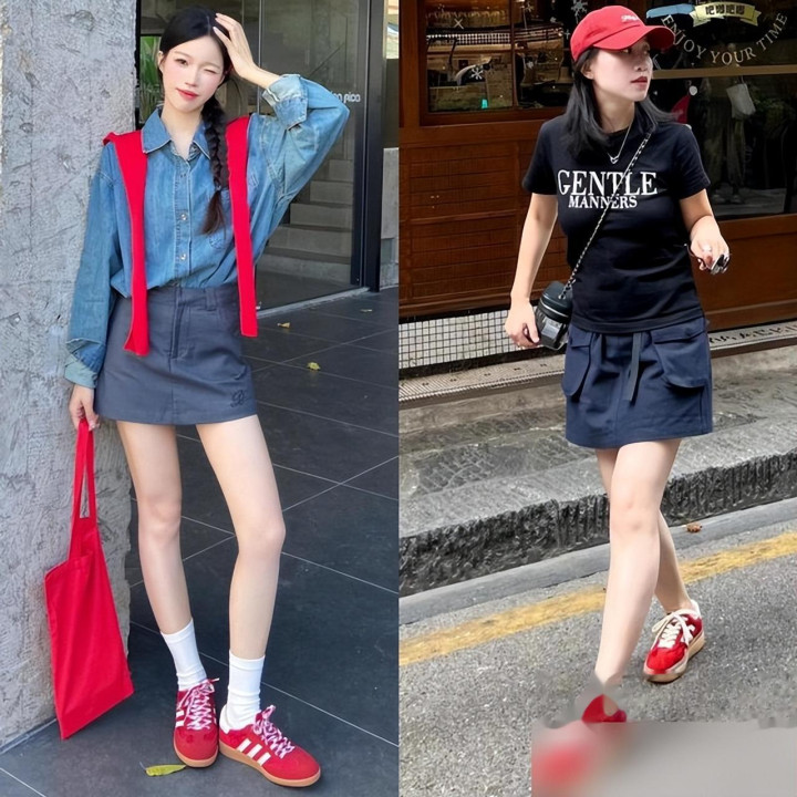 接孩子放学时,同班妈妈拽着我问链接:“你这鞋子怎么看着比别人的有质感?”我笑:“不是质感,是红鞋把牛仔裤的闷劲儿破了——就像吃泡面加了颗卤蛋,普通的东西立刻有了魂儿!”