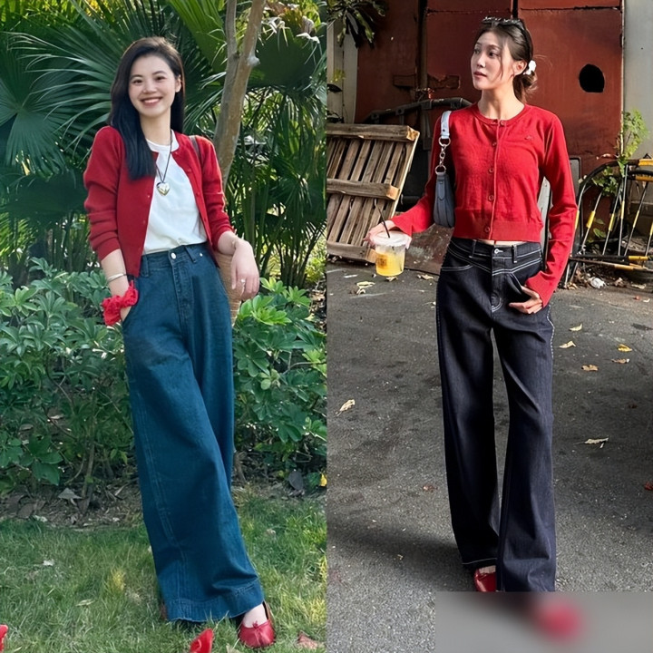 配洗水蓝牛仔裤的时候最惊喜——那条牛仔裤我穿了三年,裤脚都磨得起毛了,搭这双红鞋时,红鞋像往牛仔布上点了颗朱砂痣,旧裤子立刻活了过来,连我扎的低马尾都跟着轻爽了。