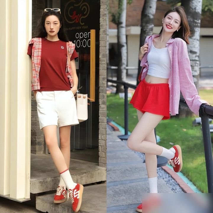 其实红鞋不是越亮越好,酒红、枣红这种“暗一点的红”才是宝——像红酒杯里的酒液,看着沉稳,却藏着后劲。40+穿这种红,既不会像小姑娘穿亮红显刻意,也不会像黑鞋那样没存在感,就像脸上擦了支豆沙色口红,不是为了装嫩,是为了让自己看着“鲜活”——不是“活着”的“活”,是“眼睛里有光”的“活”。